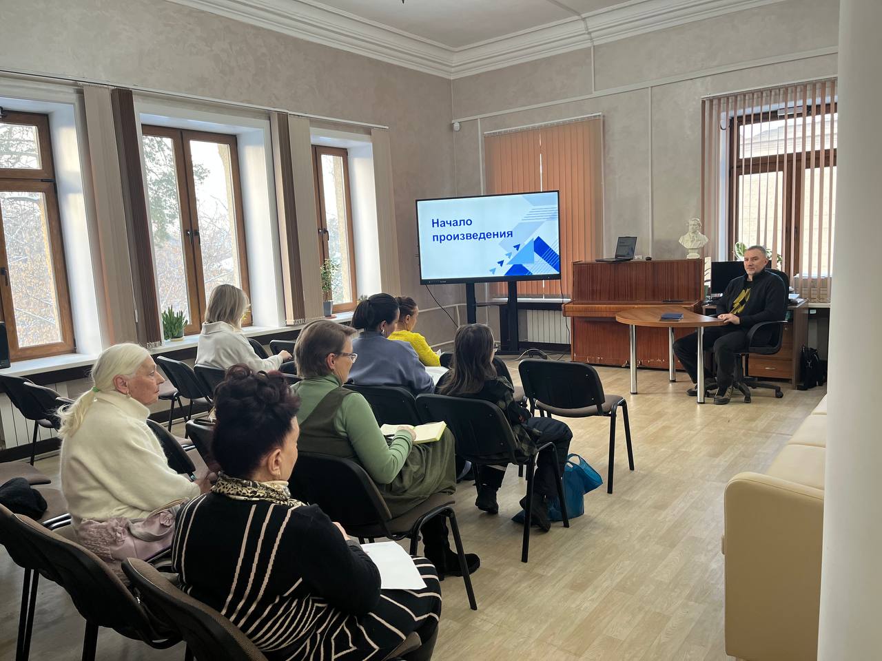 В это же время в стенах литературной гостиной прошла первая встреча в «Школе начинающего автора». Руководитель «литературной школы» Денис Гербер познакомился с участниками встречи, провел вводный курс, обозначил цель занятий. Первая встреча показала заинтересованность ангарчан в этом направлении. Талантам тоже нужно учиться, развивать и совершенствовать их. И в этом поможет «Школа начинающего автора» в библиотеке № 3 им. Л. Беспрозванного.