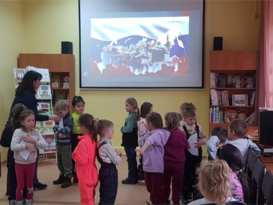 В Центральной детской библиотеке имени Аркадия Гайдара для дошколят детского учреждения № 94 ко Дню народного единства был проведен хоровод дружбы «Мы вместе – мы едины».