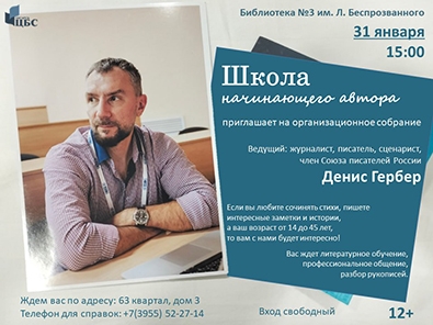 22 января открываем новый сезон краеведческих встреч в библиотеке № 3 имени Леонида Беспрозванного.