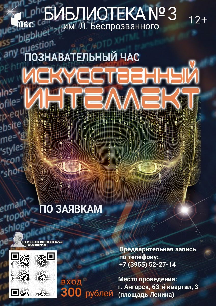 Библиотекари приглашают школьников и студентов в увлекательный мир технологий. Вы узнаете, зачем нужен искусственный интеллект и на что он способен. Познакомитесь с тем, как он возник, на базе каких биологических систем развивается. Поразмышляете о том, где используется искусственный интеллект, в каких сферах, какие открытия ждут человечество благодаря этой технологии. Вам расскажут о потенциале использования искусственного интеллекта. Продемонстрируют возможности роевого интеллекта, современных киборгов и беспилотных автомобилей.