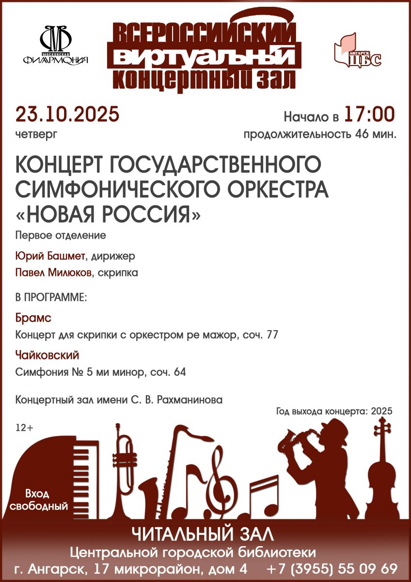 Посетители виртуального концертного зала ангарской библиотеки увидят запись, сделанную в Концертном зале имени П. И. Чайковского. Солист – Павел Милюков. За дирижерским пультом – Юрий Башмет.