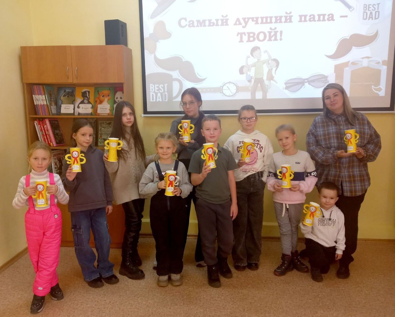 Ребята охотно участвовали в интерактивной викторине и своими руками создали подарки для своих отцов – оригинальные кубки с надписью «Лучшему папе на свете».