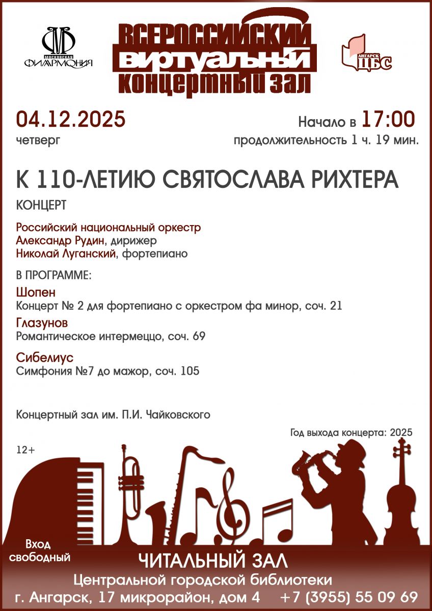 Виртуальный концертный зал ангарской библиотеки приглашает на концерт, в котором прозвучат лучшие фортепианные пьесы из исполнительского репертуара Святослава Рихтера.