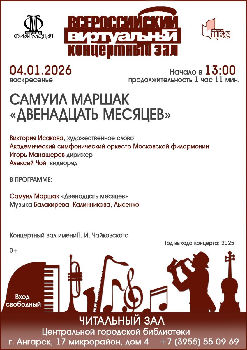 Виртуальный концертный зал ангарской библиотеки приглашает маленьких и больших ангарчан послушать волшебную зимнюю сказку Самуила Яковлевича Маршака «Двенадцать месяцев».