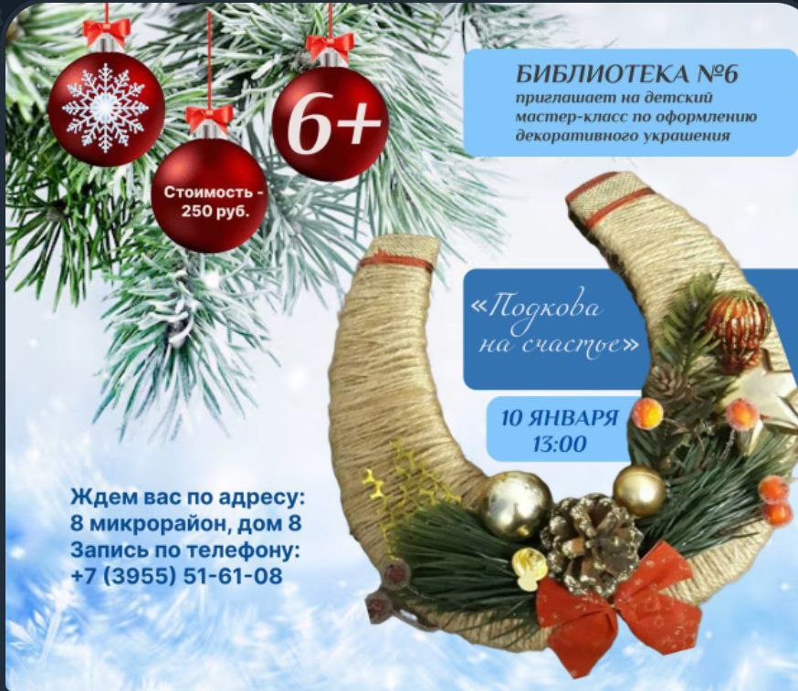 Дорогие друзья, приглашаем вас 10 января в библиотеку № 6 на увлекательные мероприятия: