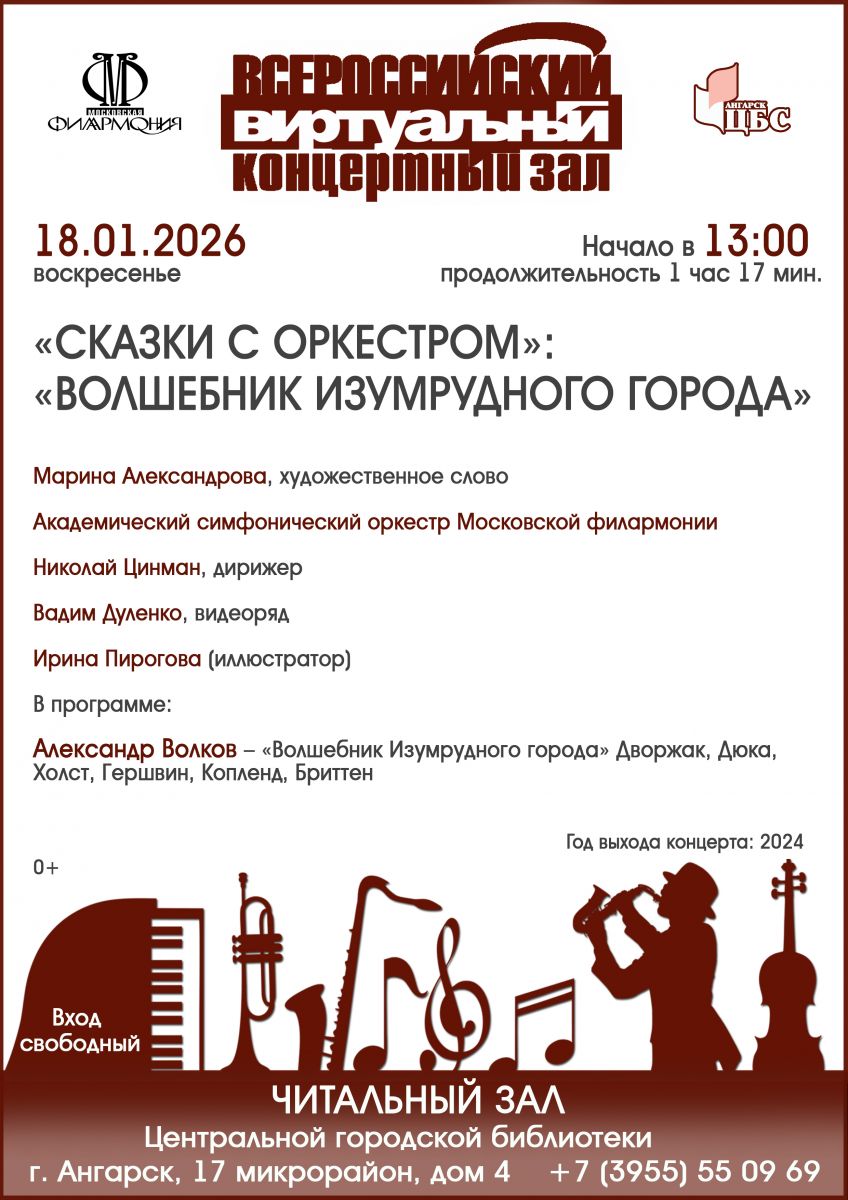 В концерте из цикла «Сказки с оркестром» вы встретитесь с героями книги Александра Волкова «Волшебник Изумрудного города». Сказку читает актриса, мастер художественного слова Марина Александрова.