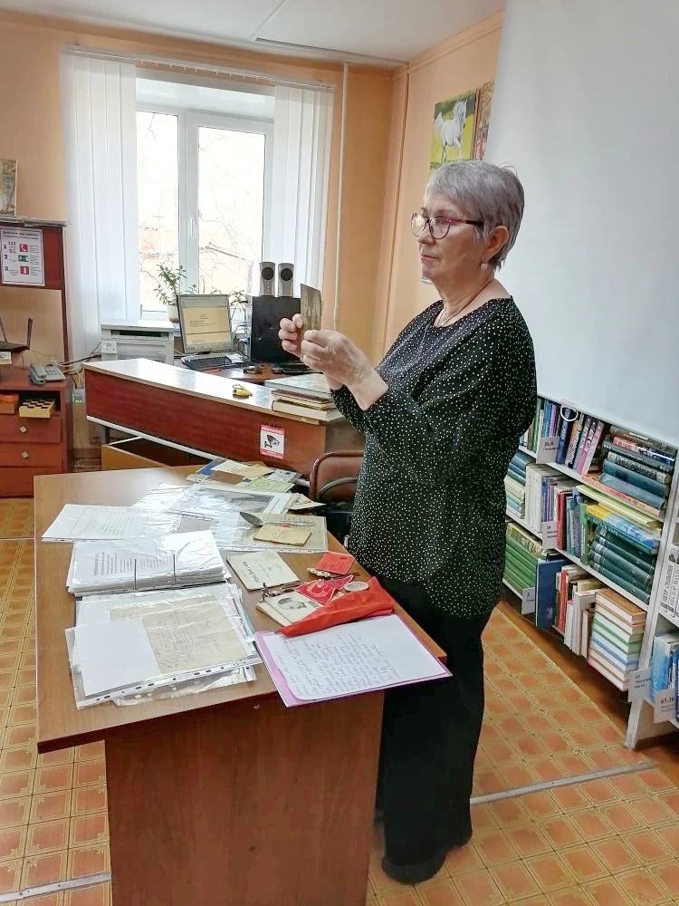 Школьники с замиранием сердца рассматривали свидетельство об окончании начальной школы, принадлежавшее дедушке Ирины Валентиновны, его повестку на Великую Отечественную войну и бережно сохраненные фотографии, самой старой из которых около 130 лет.
