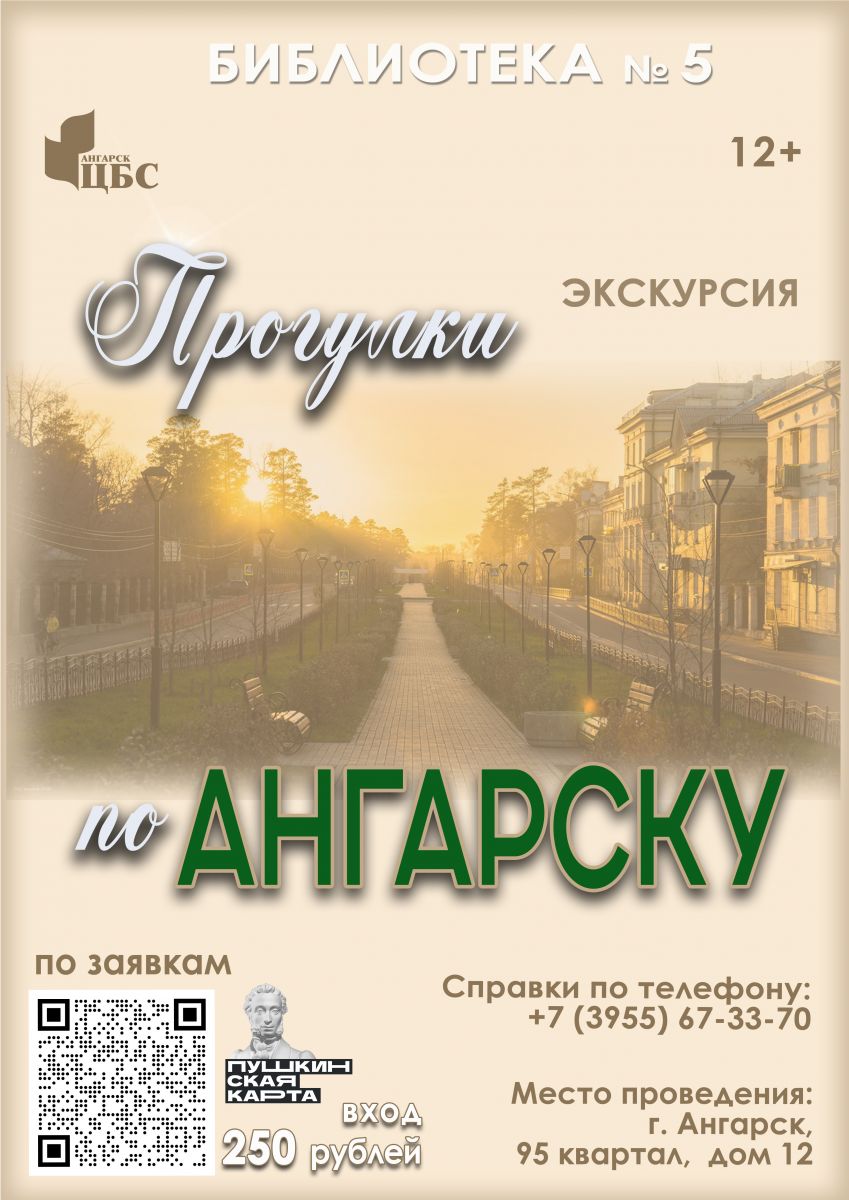 Во время экскурсии вы посетите прекрасные дворцы и площади Ангарска, его уникальные музеи, побываете в парках и скверах, на городской набережной. Особый колорит городу придают монументальная архитектура и малые архитектурные формы, которые не оставят равнодушным ни одного путешественника.