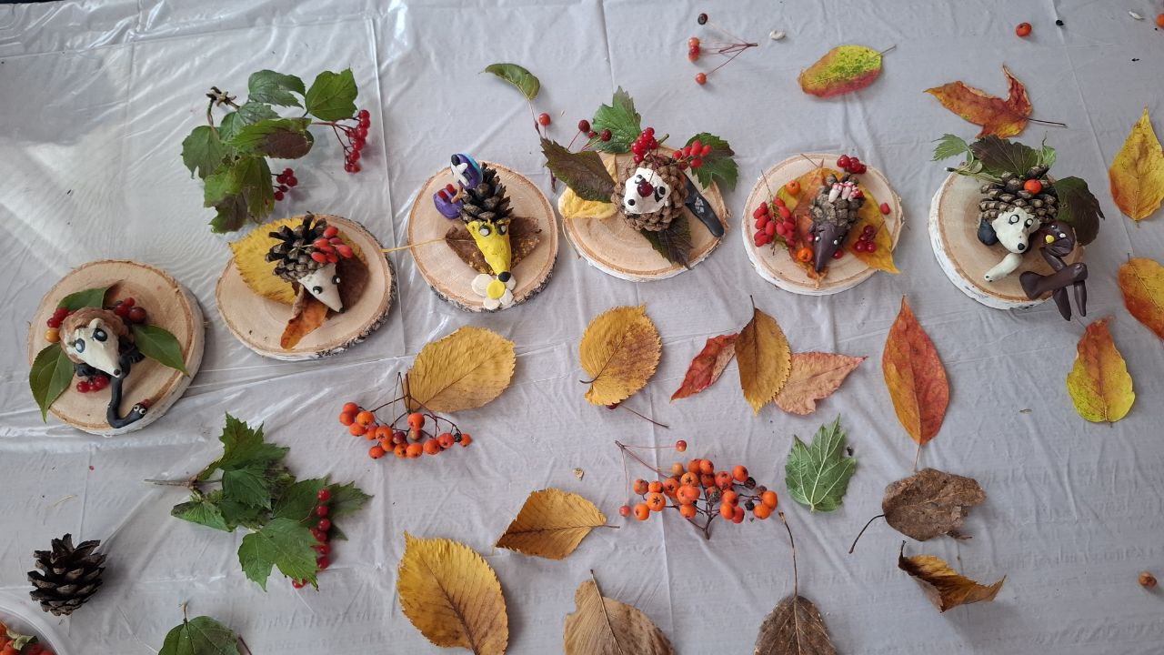Затем ребята с увлечением принялись за создание поделки «Осенний ёжик» из природного материала.
