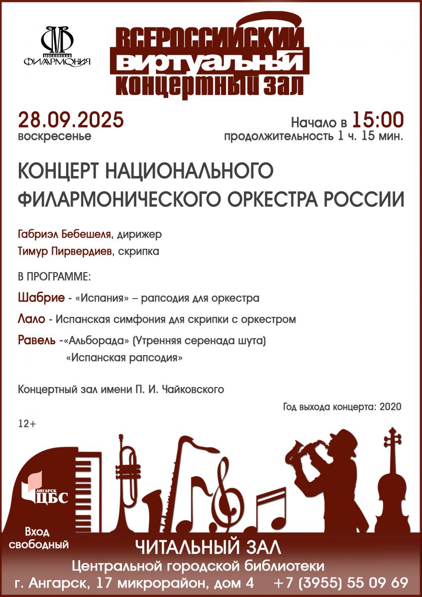 Посетители виртуального концертного зала ангарской библиотеки увидят концерт Национального филармонического оркестра России под управлением дирижера Габриэла Бебешели