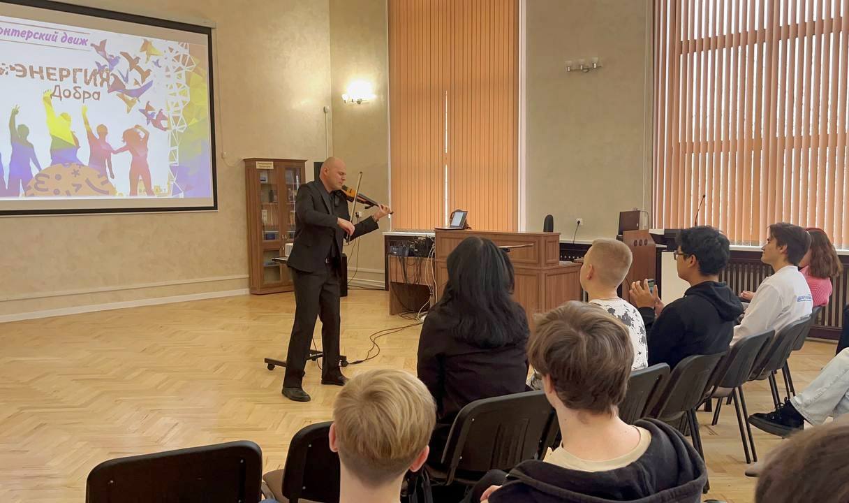 Затем вновь настало время музыки. Юный и очень талантливый ангарчанин, музыкант и исполнитель Олег Филиппов – ученик Детской школы искусств № 4, – и его замечательная концертмейстер Елена Викторовна Омшина исполнили для молодых добровольцев прекрасные классические произведения.
