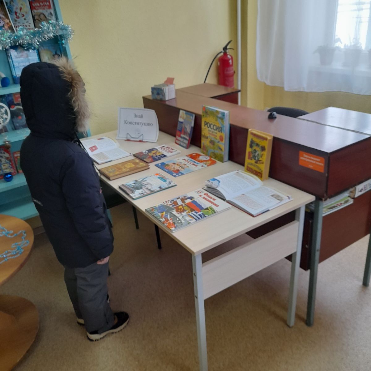 Здесь в течение всего праздничного дня проходили информационные пятиминутки у книжной выставки «Знай Конституцию».