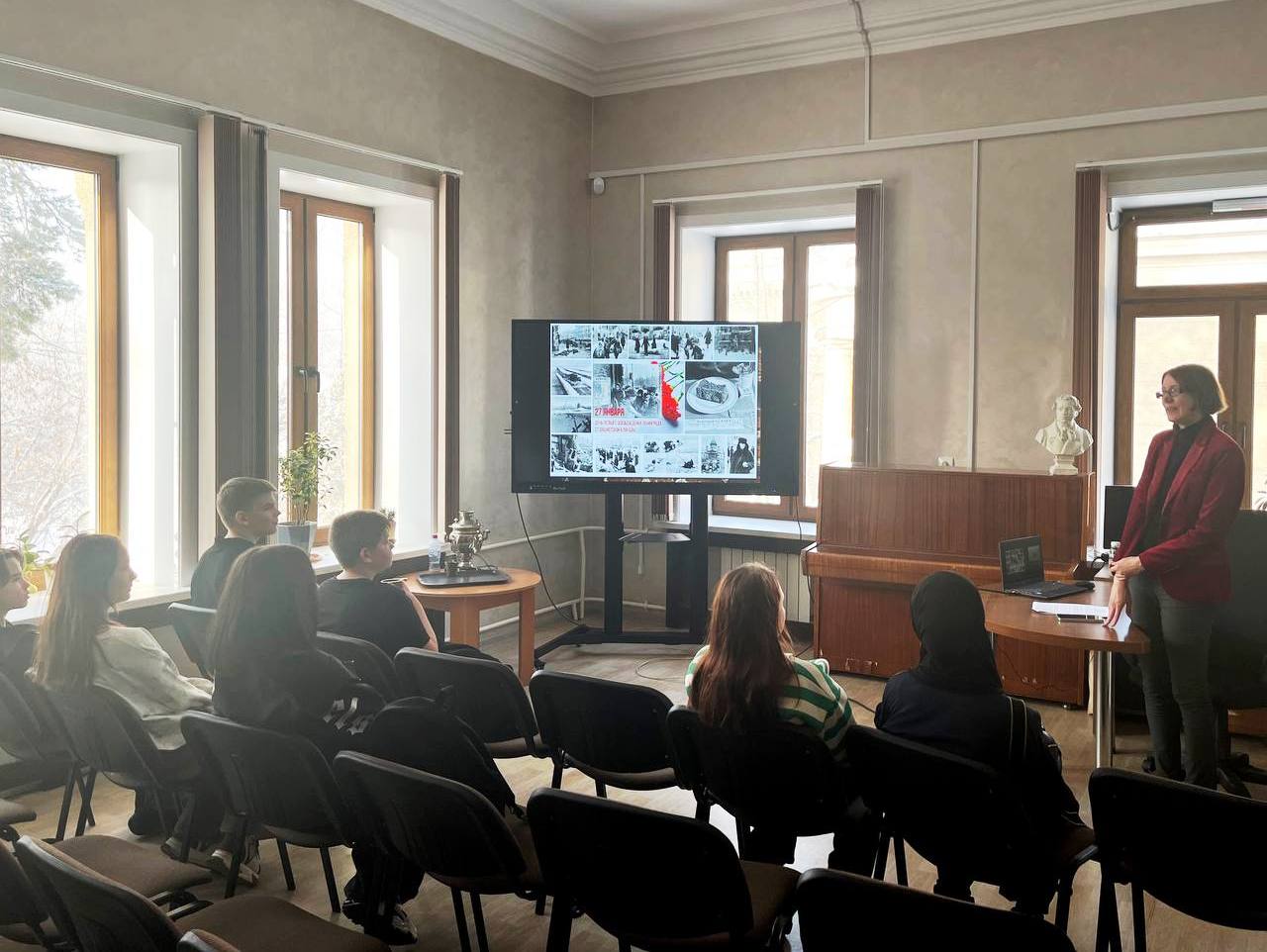 Хочется надеяться, что разговор получился плодотворным – ученики задавали вопросы, включались в обсуждение. А для тех, кто тоже хочет поближе познакомиться с историей блокадных лет, в библиотеке № 3 работает книжная выставка, где представлены художественные произведения о блокаде, свидетельства выживших и исследовательские материалы.