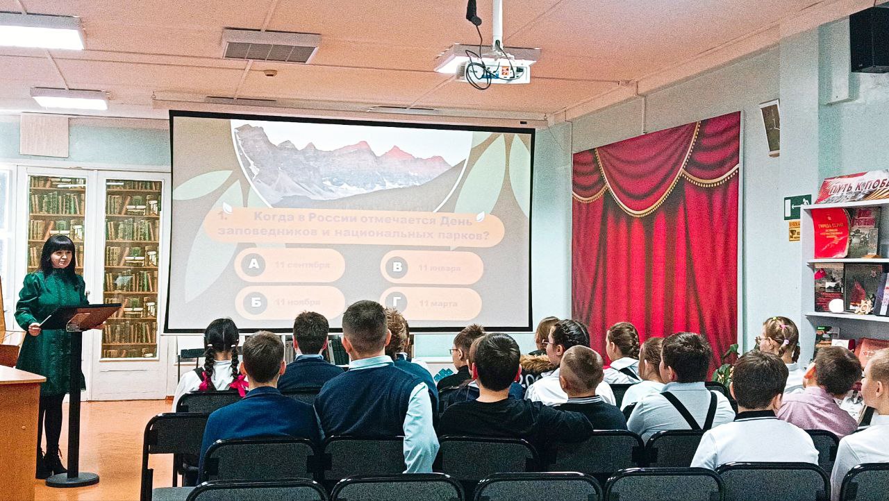 В самом начале им предстояло ответить на 10 интересных вопросов о российских заповедниках и узнать, где находится самая красивая пещера в России и самый высокий водопад, какой заповедник называют «главным роддомом для белого медведя», какую реку охраняют известные столбы в Якутии.