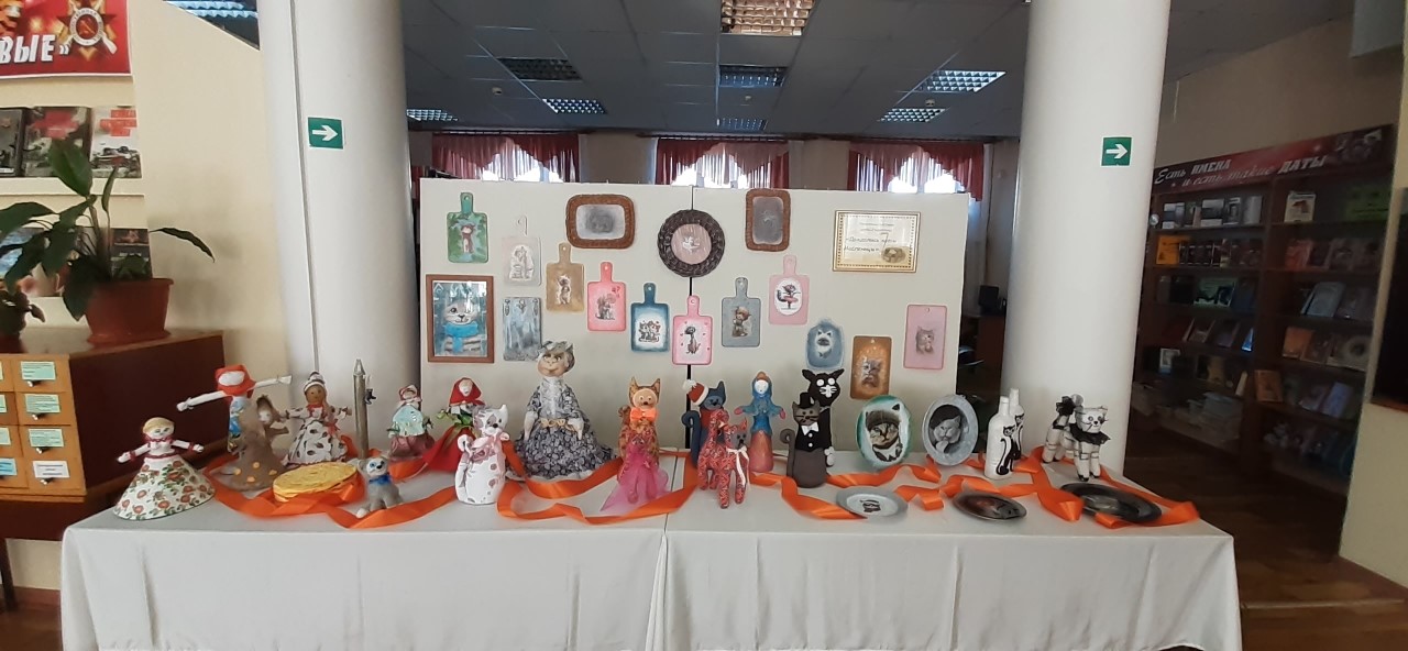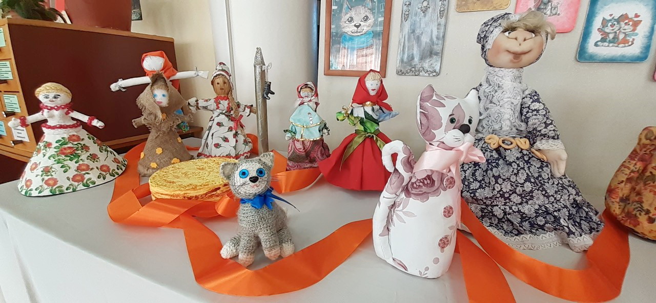 Библиотека № 5 отмечает масленичную неделю творческой выставкой «Дождались коты Масленицы», оформленной рукодельницами клуба «Родничок».