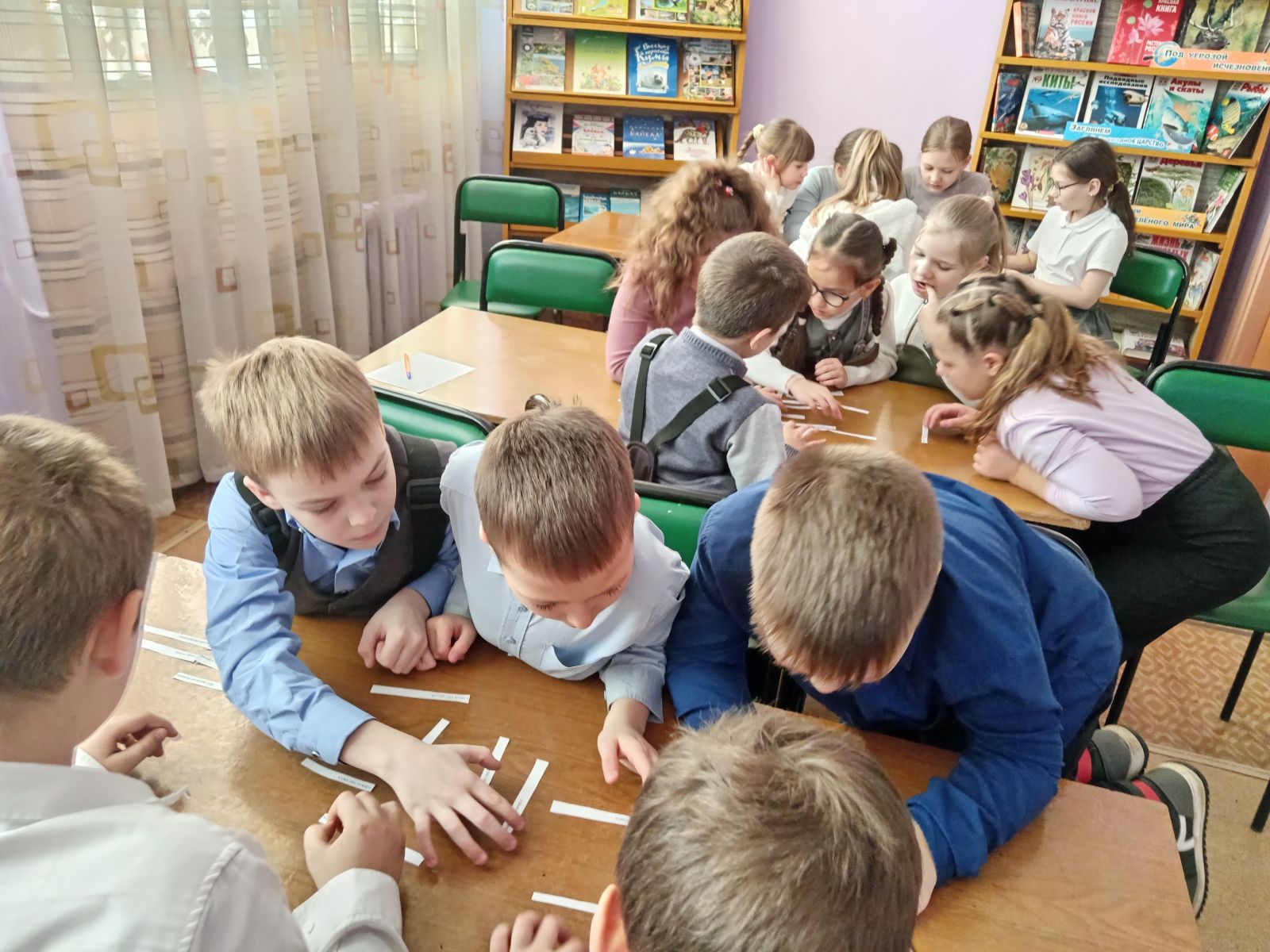 К этому празднику в рамках проекта «Культурная суббота» проведены игровые программы «Родное слово» для ребят начальной школы. Участники мероприятия с удовольствием выполняли игровые задания на знание русского языка: составляли словесную цепочку и новые слова, собирали пословицы и поговорки, познакомились с понятием «крылатые слова», поработали с фразеологическими словарями, искали «заблудившиеся» буквы, решали ребусы, выполняли задания «наоборот» и т.д. В конце мероприятия посмотрели 3-й выпуск мультфильма «Наш друг ПИШИЧИТАЙ» киностудии «Союзмультфильм» 1978 года.