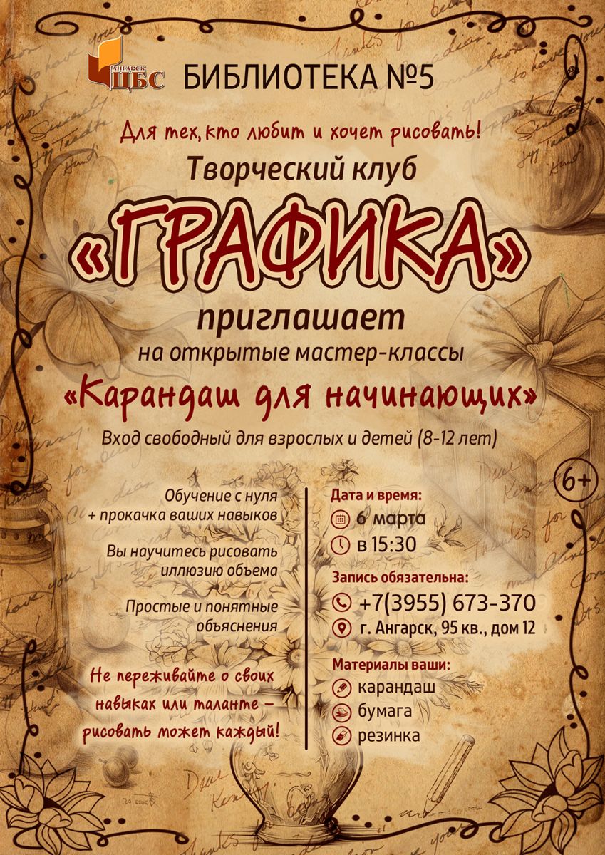 Творческий клуб «Графика» приглашает на открытые мастер-классы «Карандаш для начинающих»
