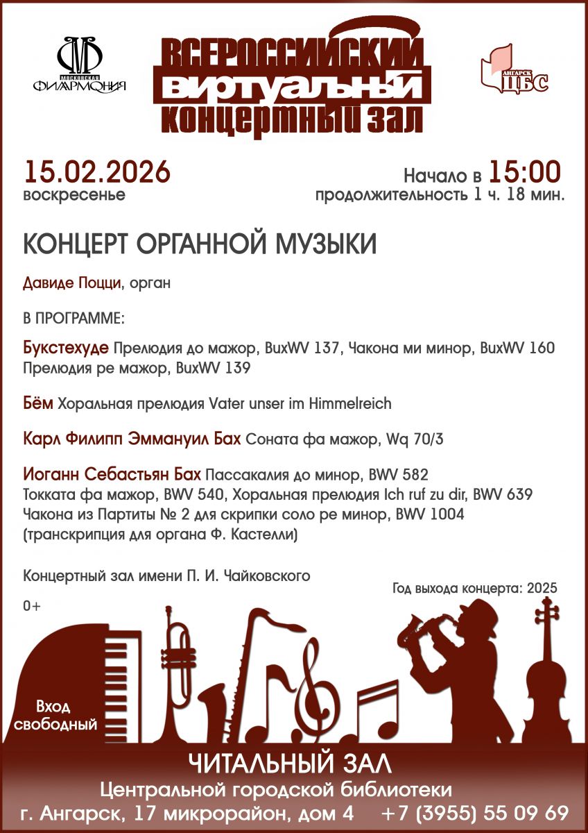 Представляем вниманию посетителей виртуального концертного зала ангарской библиотеки уникальный концерт органной музыки! Итальянский органист Давиде Поцци известен как превосходный исполнитель музыки барокко. Основную часть его репертуара составляют произведения композиторов XVII-XVIII века.