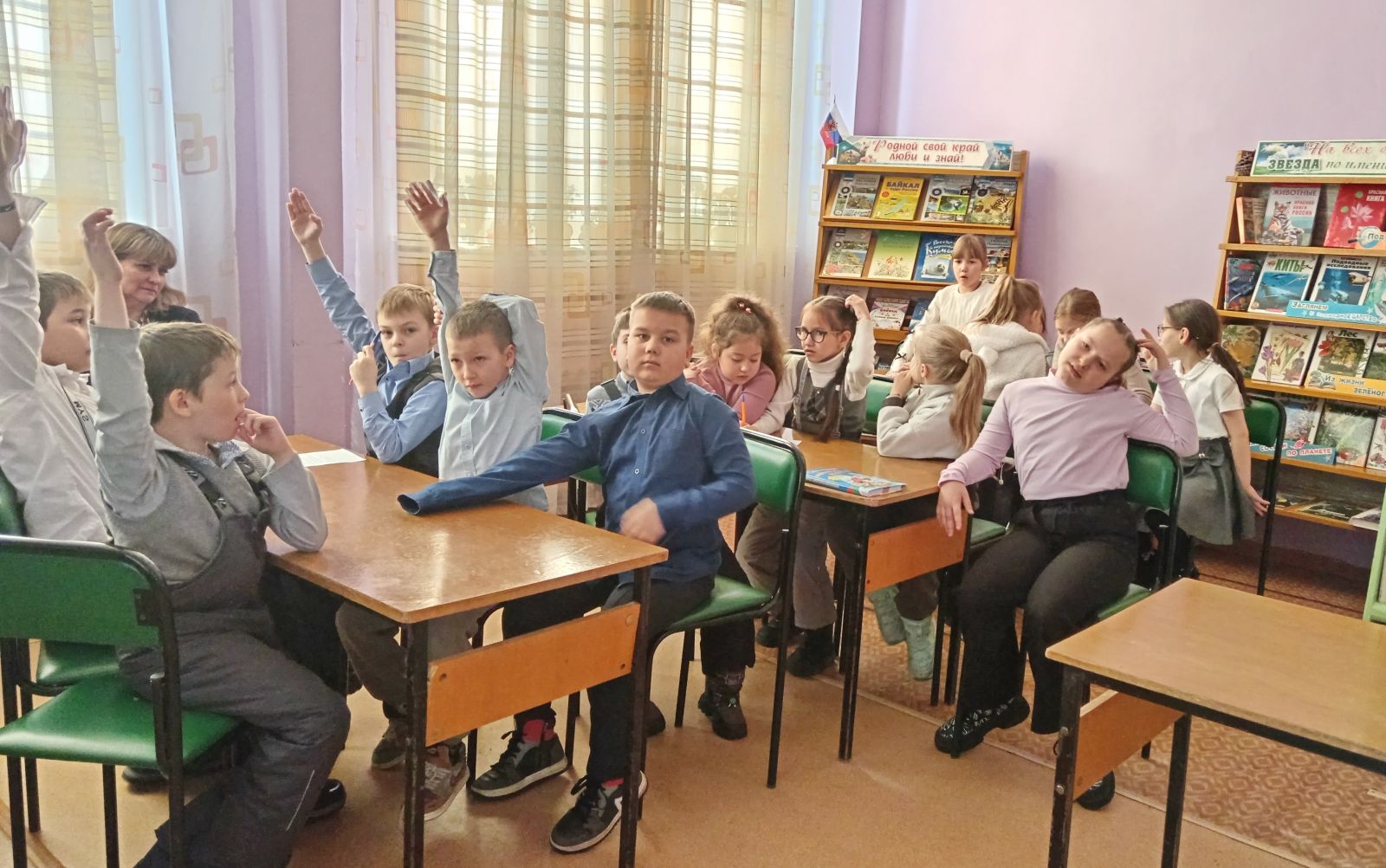 К этому празднику в рамках проекта «Культурная суббота» проведены игровые программы «Родное слово» для ребят начальной школы. Участники мероприятия с удовольствием выполняли игровые задания на знание русского языка: составляли словесную цепочку и новые слова, собирали пословицы и поговорки, познакомились с понятием «крылатые слова», поработали с фразеологическими словарями, искали «заблудившиеся» буквы, решали ребусы, выполняли задания «наоборот» и т.д. В конце мероприятия посмотрели 3-й выпуск мультфильма «Наш друг ПИШИЧИТАЙ» киностудии «Союзмультфильм» 1978 года.