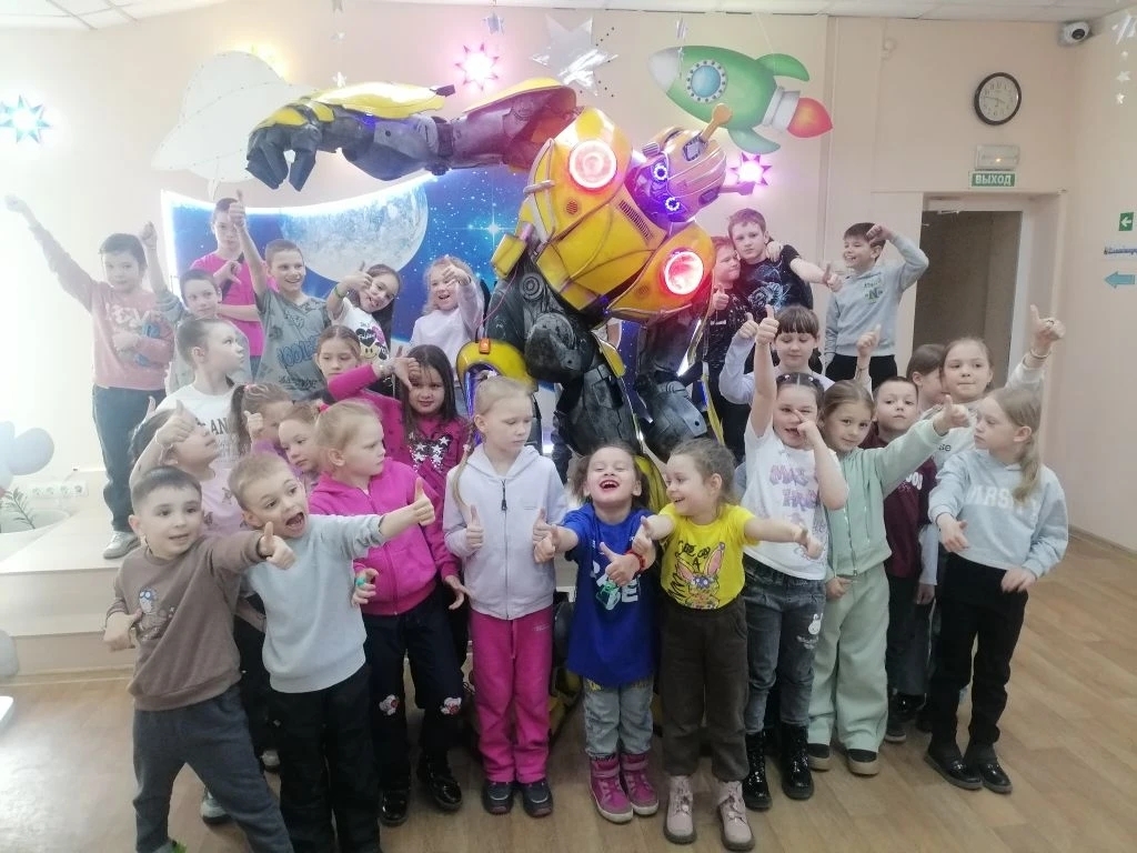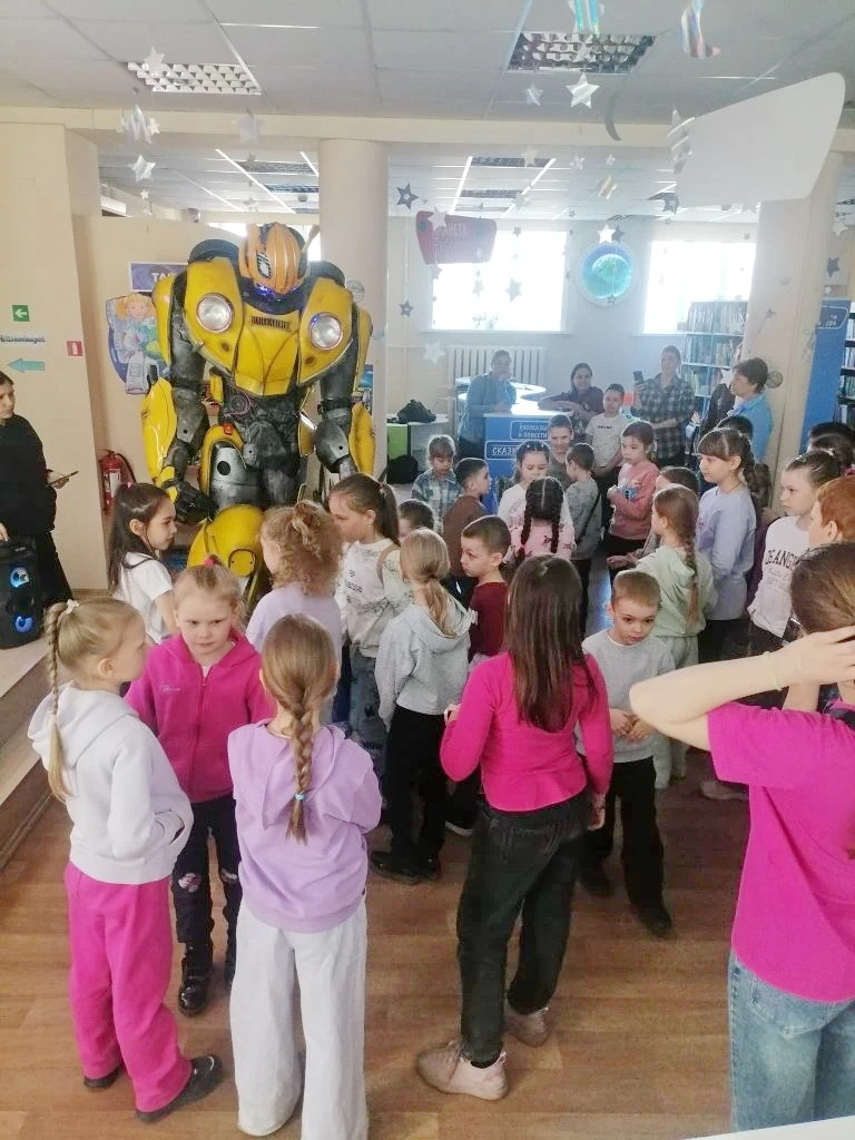 Участники мероприятия отправились в путешествие с важной миссией – спасти планету автоботов. Об этом ребят и родителей попросил сам инопланетный гость. Огромный робот-автобот – герой знаменитой серии комиксов – пришел на космический праздник совершенно неожиданно, от общения с великаном маленькие земляне остались в полном восторге. Разумеется, после такого сюрприза они с азартом отправились на поиски секретного шифра. Испытания были совсем не сложными и очень творческими. Своими руками участники изготовили книжные закладки-ракеты, а из воздушного пластилина создали свою солнечную систему. О ней, кстати, разговор продолжился и в библиотечном планетарии, где ребята наблюдали за звездами и за планетами, отвечали на вопросы.